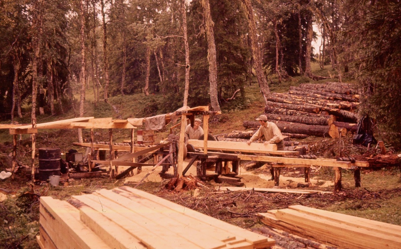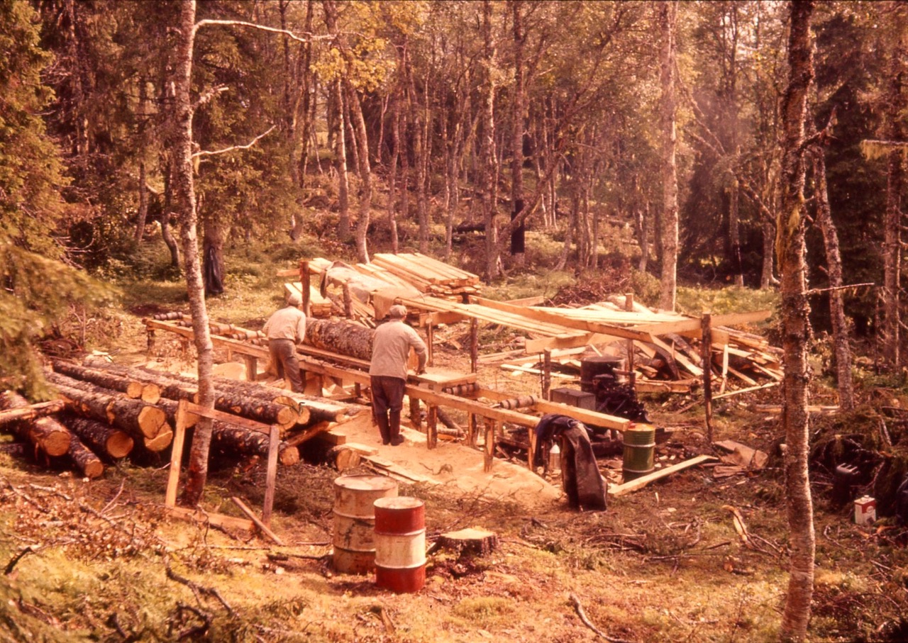 Han hogg skog (gran) ca 300m ovenfor tomta. Med hest og langvogn frakta han sagbenken fra Smestad og over fjellet, til sagplassen ved Grønnningen. Sagbenken hadde han fått låne av Ole Husås, som også ble leid som sagmester. Jan Smestad var medhjelper under saginga.